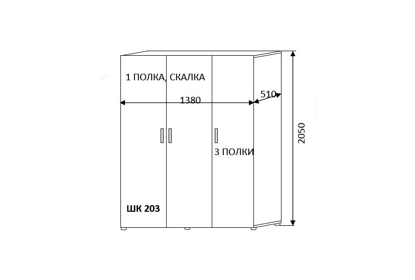 Ширина 1400| Высота 2005 | Глубина 500